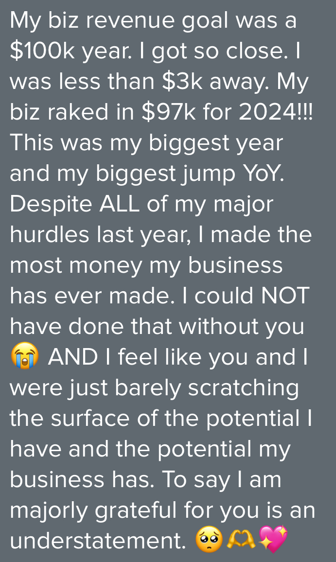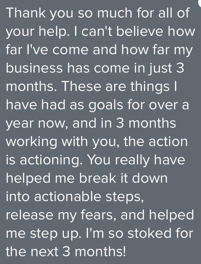 ✨ Hitting your first $100K year in business, not through hustle or burnout, but through aligned action and a rock-solid mindset.